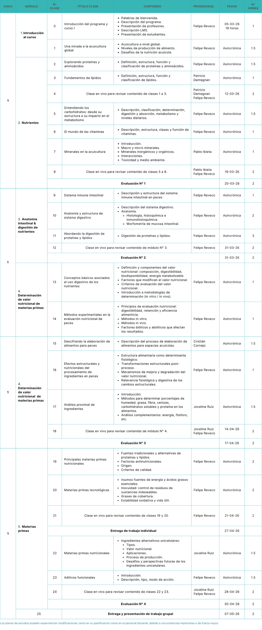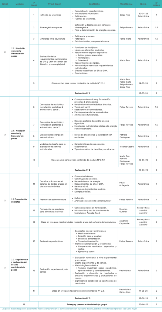 • Dos cursos con clases dictadas por un equipo de docentes expertos y apasionados por la nutrición de peces.